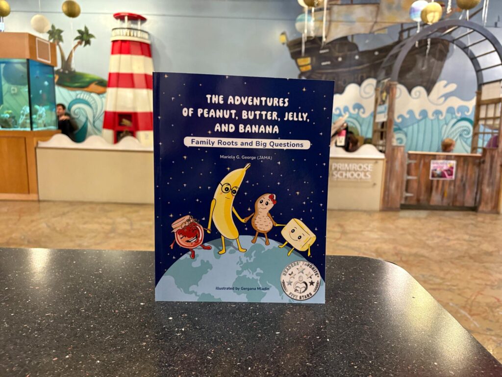 Author visit with Mariela George, Friday, March 27th at 11am. Mariela George will read “The Adventures of Peanut, Butter, Jelly, and Banana: Family Roots and Big Questions”. This is the story of four “flavorful friends” sitting around a campfire talking about the question every child ponders at some time: “Where do I come from?” This beautiful book helps children see the magic of family roots, curiosity, and what makes each person special! Author Mariela George will read her story on stage; and that will be immediately followed by a meet and greet, where she will sell and sign her books until 12:15pm. Included in the price of admission, which is $9 for adults and children 1 year and older. bit.ly/TWCMtickets #ToddlerMom #Art #ChildrensMuseum #TheWoodlands #WoodlandsMom #BookReading #StoryTime #TheWoodlandsChildrensMuseum