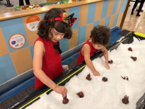 As guests step inside, they are greeted with live holiday music presented by the Lone Star Strummers. During the day, guests are invited to visit and pose for photos with Olaf from Frozen and engaging in hands-on snow play creating shapes with handfuls of white flakes.